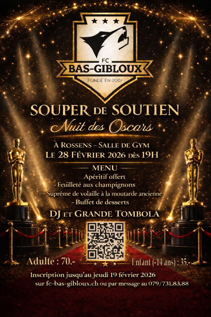 Souper de soutien du 28.02.2026Inscrivez-vous ! Date 28 février 2026INSCRIPTIONS VIA LE LIEN CI-DESSOUS Voir le site Web des événementsAjouter au calendrierGoogle AgendaApple CalendarExporter le fichier .icsOutlook LiveOutlook 360